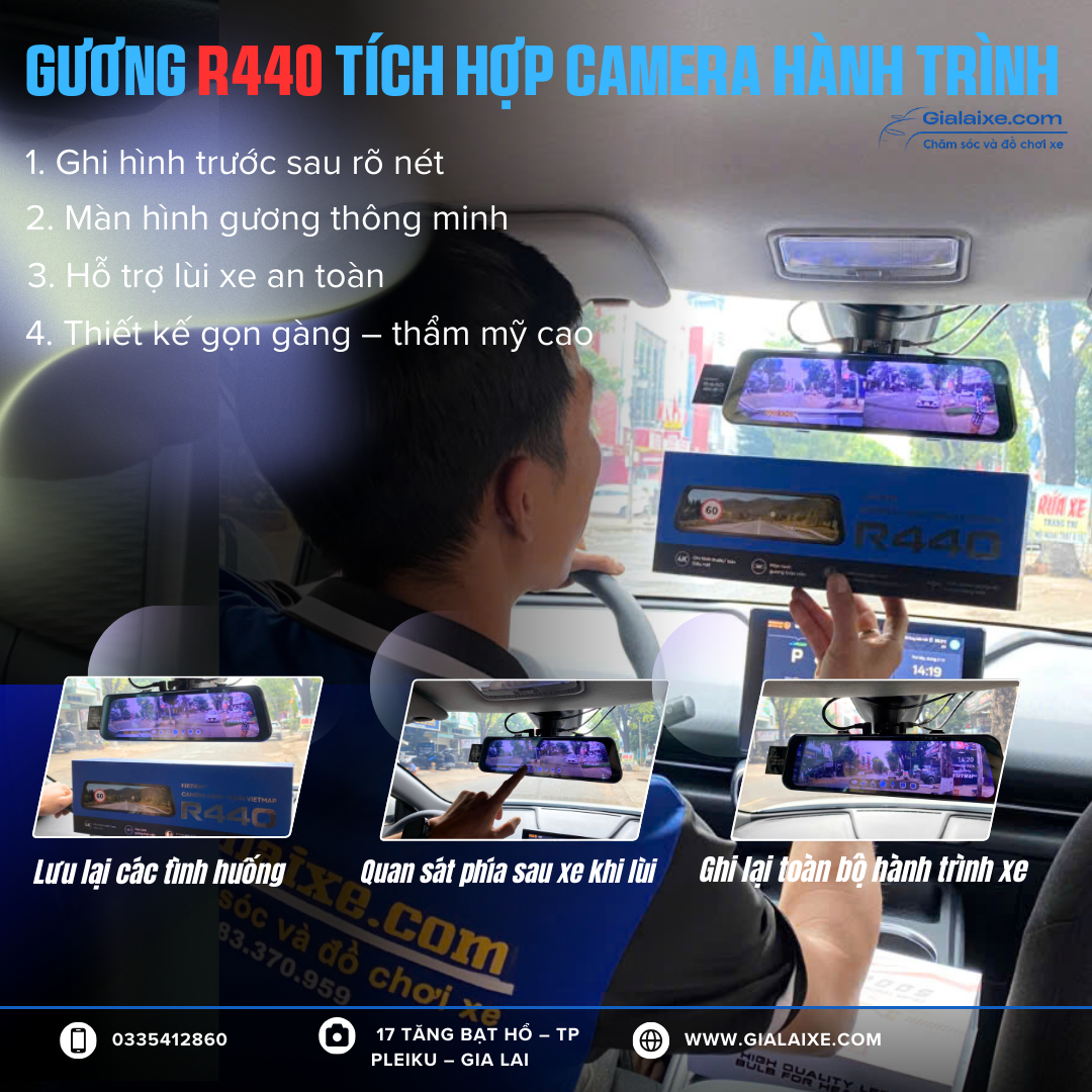 Hiện nay việc lắp camera hành trình ô tô gần như trở thành trang bị cần thiết cho mọi xe. Không chỉ giúp ghi lại hành trình di chuyển, camera còn là bằng chứng quan trọng khi xảy ra va chạm giao thông.Một trong những sản phẩm đang được nhiều chủ xe lựa chọn là camera hành trình gương R440 của VietMap với thiết kế hiện đại và nhiều tính năng thông minh.